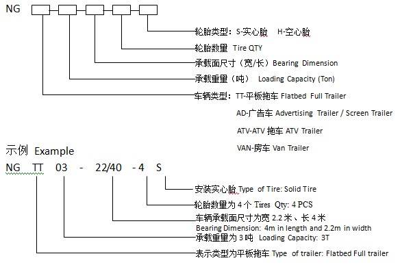 | 型號Model No. | 承重平臺尺寸 Size [米/Meter] | 高 Height [米/Meter] | 承重重量 Payload Capacity [噸/Ton] | 輪胎類型 Type of Tire | 輪胎數(shù)量Tire QTY | 主架構鋼結構Cross Member | 主梁鋼結構 Main Beam | |